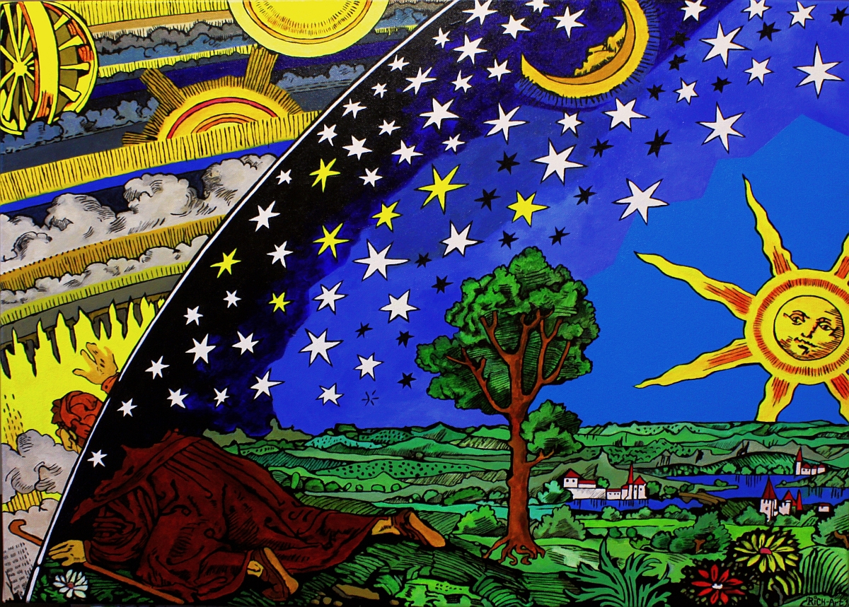 | Flammarion Holzschnitt L'Atmosphère, von 1888 Farbige Reproduktion |
